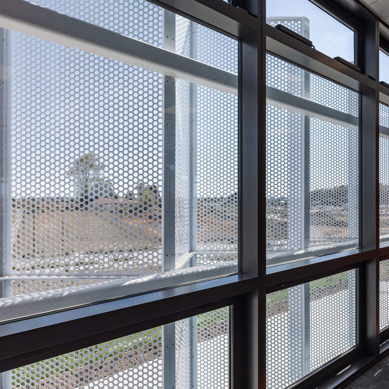 穿孔金屬板廣泛用于外部陽(yáng)光控制系統(tǒng)。 為此,面板使人們享受舒適的工作環(huán)境而不會(huì)刺眼的陽(yáng)光,并保持空氣流入建筑物并調(diào)節(jié)溫度。 此外,這種采用也為建筑外墻增添了活力。 穿孔金屬防曬霜的最佳選擇材料是鋁或鋁合金。 成品具有很高的強(qiáng)度重量比,即使在長(zhǎng)期的陽(yáng)光照射下也能抵抗老化。